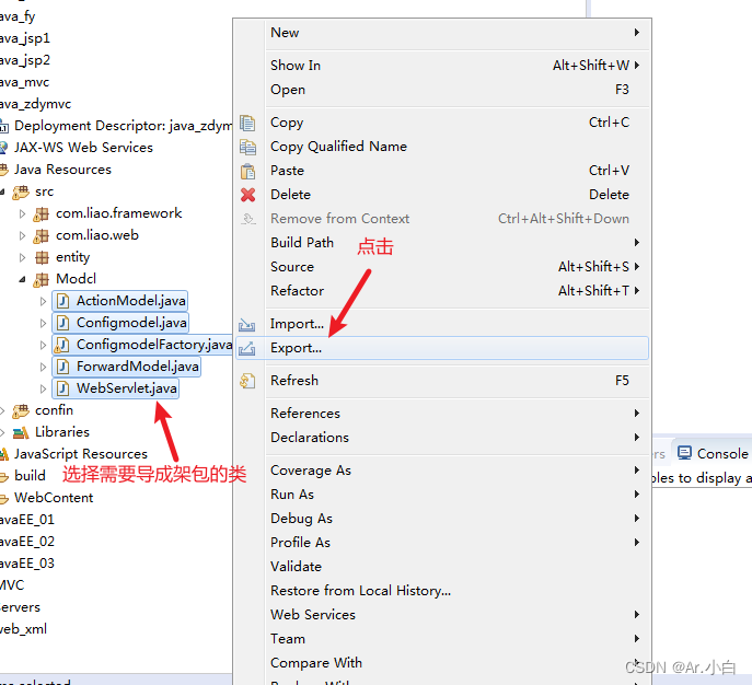 - 在 Package Explorer 中选择你要导出的项目内容。如果你要导出项目中所有的类和资源,只需选择整个项目即可。
