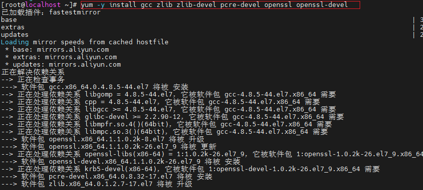 yum -y install gcc zlib zlib-devel pcre-devel openssl openssl-devel