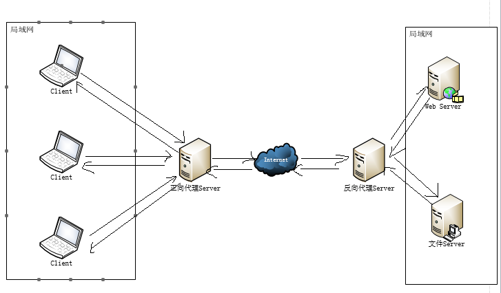 反向代理:反向代理(Reverse Proxy)方式是指以代理服务器来接受internet上的连接请求,然后将请求转发给内部网络上的服务器,并将从服务器上得到的结果返回给internet上请求连接的客户端,此时代理服务器对外就表现为一个反向代理服务器。