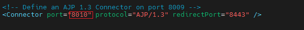3.AJP端口,默认8009,如下改,8010