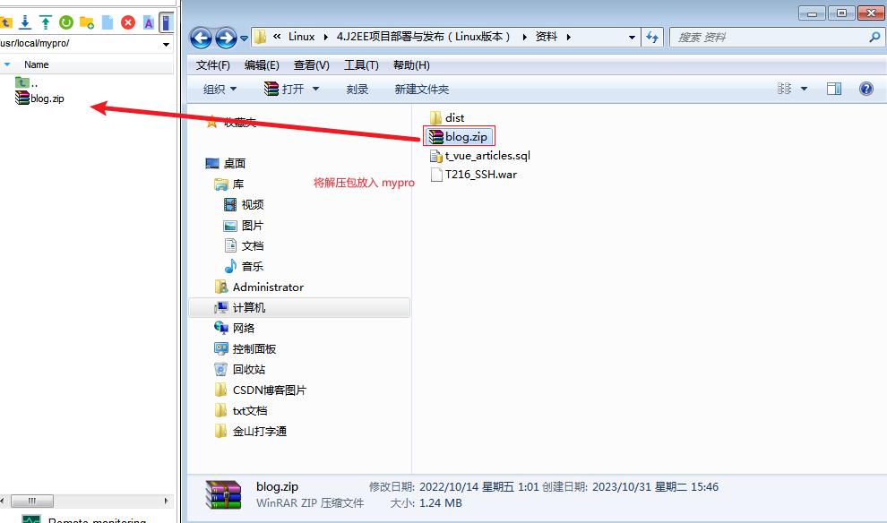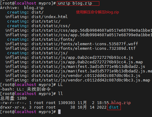 unzip blog.zip