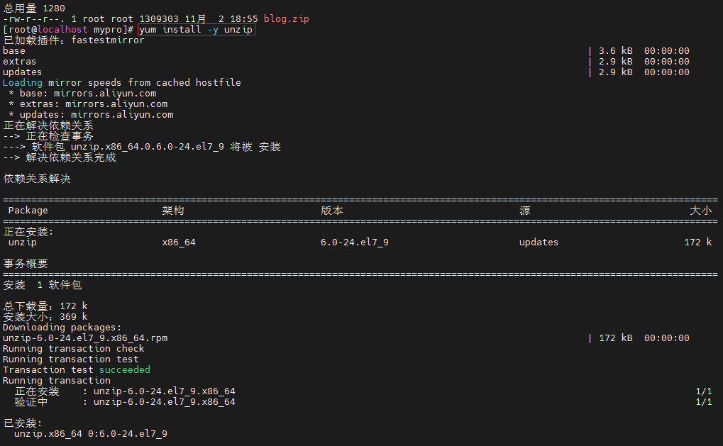 yum install -y unzip