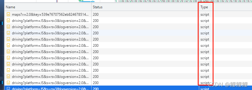 但这种方案存在一个问题,使用高德V2.0及以上版本时,调用amap是js自动调取的,非XHR的请求,使用前端拦截器无法正常拦截到,如下图,因此,这种方案不可行。