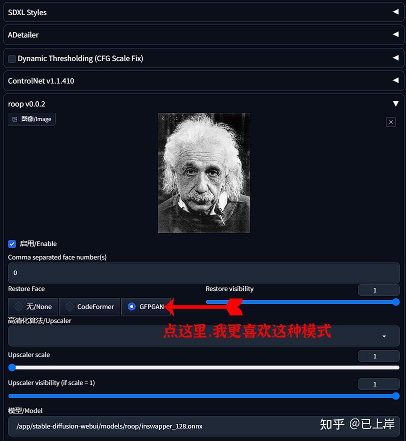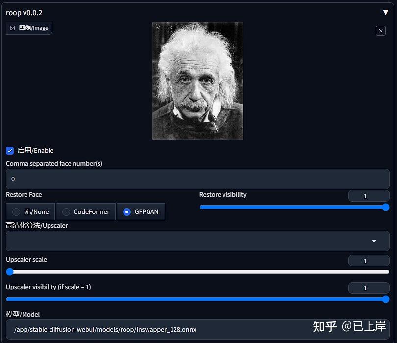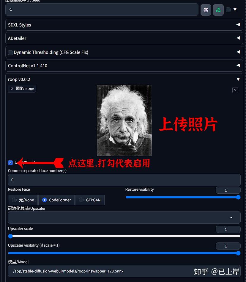 - 下面的roop插件按照之前图生图一样上传,参数用我的这个