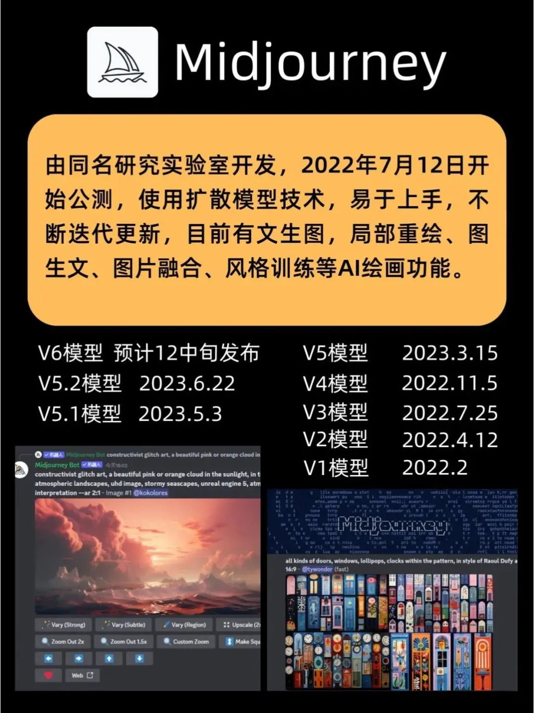 目前应用最广的是 Midjourney 和 Stable Diffusion,之前也给大家整理过系统教程,同学们可以看看我的往期入门教程