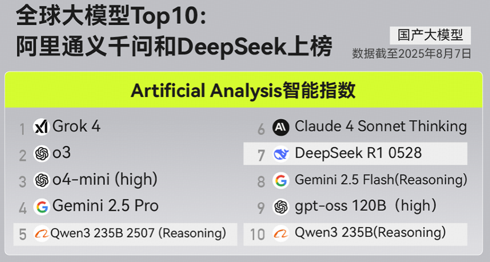 大模型测评网站Artificial Analysis数据显示,目前GPT-5已经超过Grok4排在第一!在开源模型榜中,目前排名前十的有六个是国产大模型!