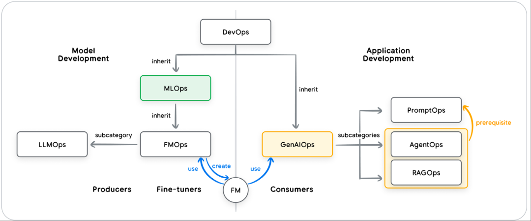 图:DevOps、MLOps 和 GenAIOps 之间的关系