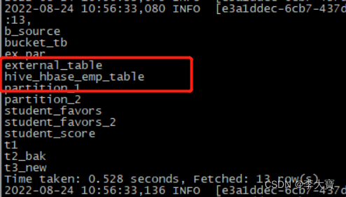 在 Hive 和 HBase 中分别查看是否生成了相应的表.