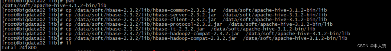 cp /data/soft/hbase-2.3.2/lib/hbase-server-2.3.2.jar /data/soft/apache-hive-3.1.2-bin/lib