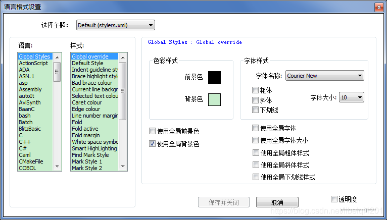 在左侧选中“语言”,然后在右下侧设置制表符宽度为4, 勾选“替换为空格”,设置完成。