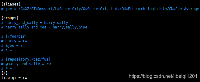 最后修改con文件夹下面的authz文件,增加用户组,目录认证,组权限