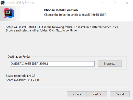 5)设置 IDEA 的安装目录,建议不要安装在系统盘(通常 C 盘是系统盘)