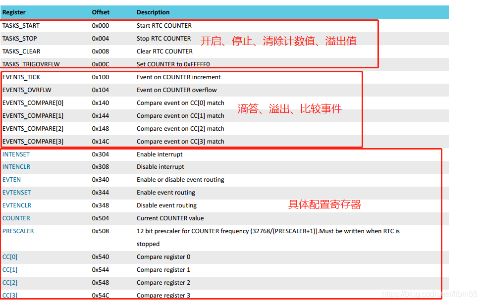 CC[0-3](0x540-0x54C):比较寄存器,计数器的数值和CC的相同时,会触发事件或中断