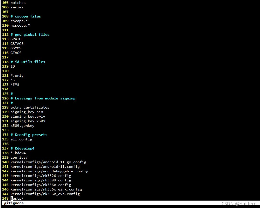 博客讲述了如何解决RK3568设备在Android 11系统下kernel编译生成的文件问题。通过在kernel目录下的.gitignore文件中添加特定条目,可以屏蔽不需要的编译生成文件,保持版本控制的整洁。