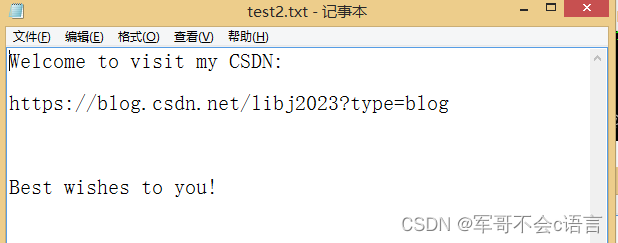 FILE* pfwrite = fopen("test2.txt", "w");//以只写方式打开待写文件