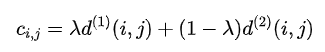 综合匹配度是通过运动模型和外观模型的加权得到的