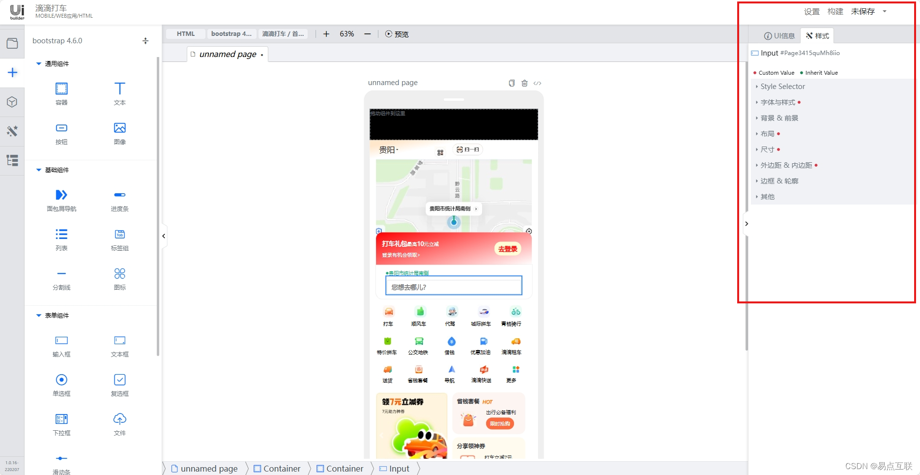 在YDUIbuilder的组件界面中,初学者们可以像搭积木一样,将各种组件拖拽到布局上。每个组件都是构建梦想界面的一块砖,而YDUIbuilder提供了一个几乎无限大的积木箱,让你的创意得到充分的释放。