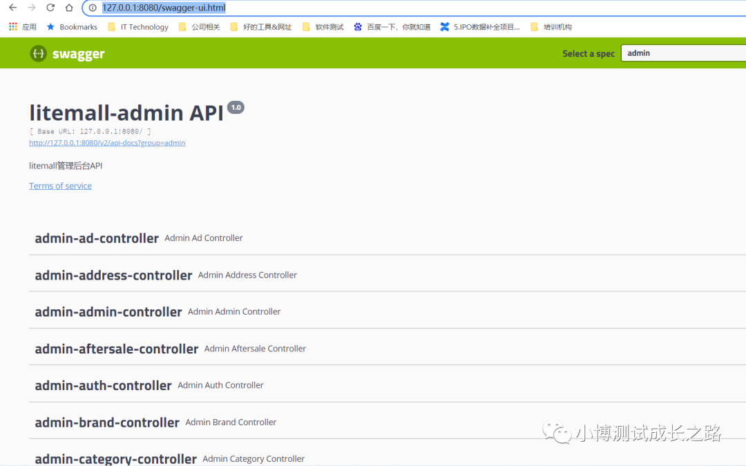 打开浏览器,访问http://127.0.0.1:8080/swagger-ui.html页面,能出现以下内容则表示后端部署成功: