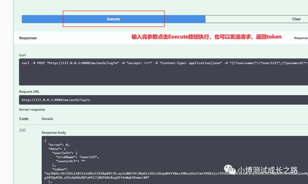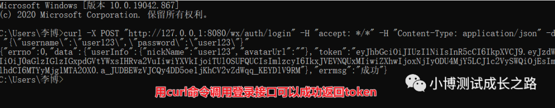 curl -X POST "http://127.0.0.1:8080/wx/auth/login" -H "accept: */*" -H "Content-Type: application/json" -d "{\"username\":\"user123\",\"password\":\"user123\"}"