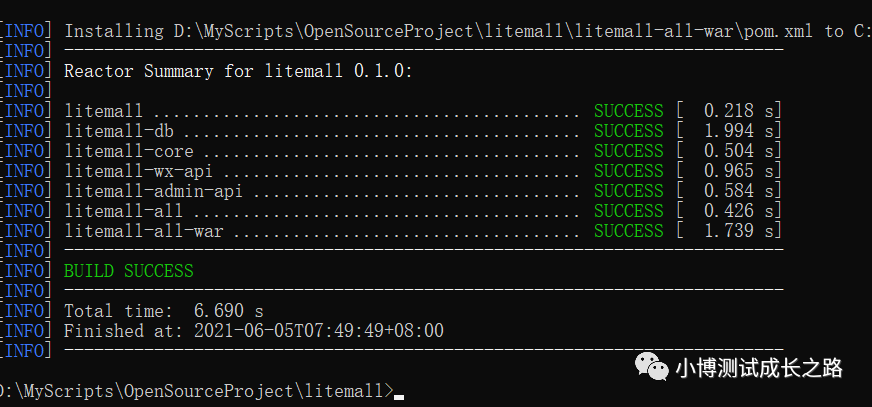 这里打包的命令用mvn install / mvn package均可,-U 以及clean 参数不加问题也不大。打完包后,在litemall-all目录下的target文件夹中会有一个xxx-exec.jar的可启动jar包,这就是打好的部署包,在litemall-all-war文件夹下也会生成一个war包,不过war包我没有试过能不能部署,感兴趣的可以自己去试试。