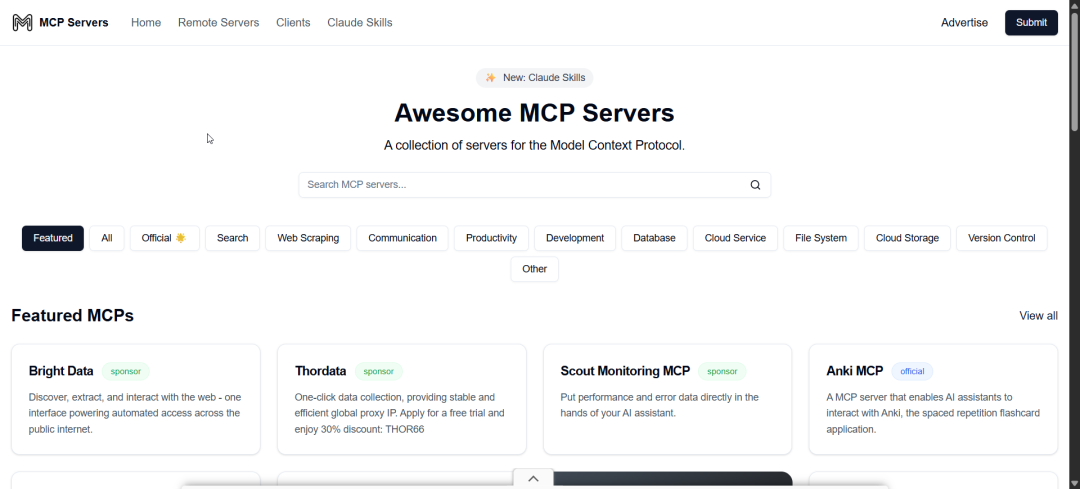 接下来推荐几个mcp servers的地址: