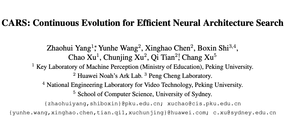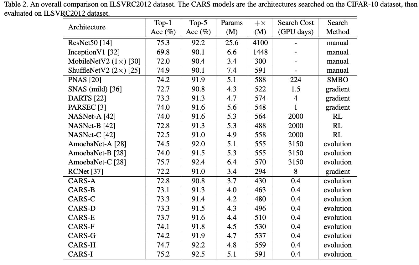 论文: CARS: Continuous Evolution for Efficient Neural Architecture Search