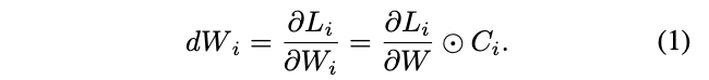 给定GT Y Y Y,预测的损失为 L i L_i Li,则 W i W_i Wi的梯度计算如公式1