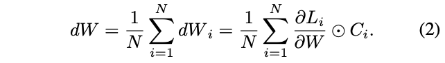 参数 W W W为网络中的所有参数,参数 W i = W ⊙ C i , i ∈ { 1 , . . . , N } W_i=W\odot C_i, i\in \{1,...,N\} Wi=W⊙Ci,i∈{1,...,N}, ⊙ \odot ⊙为mask操作,只保留 C i = 1 C_i=1 Ci=1对应位置的参数。对于输入 X X X,网络的结果为 P i = N i ( X , W i ) P_i=\mathcal{N}_i(X,W_i) Pi=Ni(X,Wi), N i \mathcal{N}_i Ni为 i i i-th个网络, W i W_i Wi为其参数
