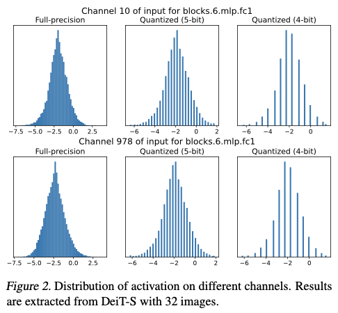 然而,强大的能力伴随着相当的复杂性。ViTs固有的架构复杂性导致了高计算需求和可观的内存要求,这在资源受限的环境中部署时带来了挑战。为了缓解这一困境,模型量化吸引了业界和学术界的持续关注。量化通过实现权重和激活的低位表示来减少模型复杂性,为高效部署提供了一条有前景的途径。最近,研究人员逐渐关注于视觉Transformer的后训练量化(PTQ),该方法旨在利用一个小型校准数据集和较低的成本对模型进行量化。