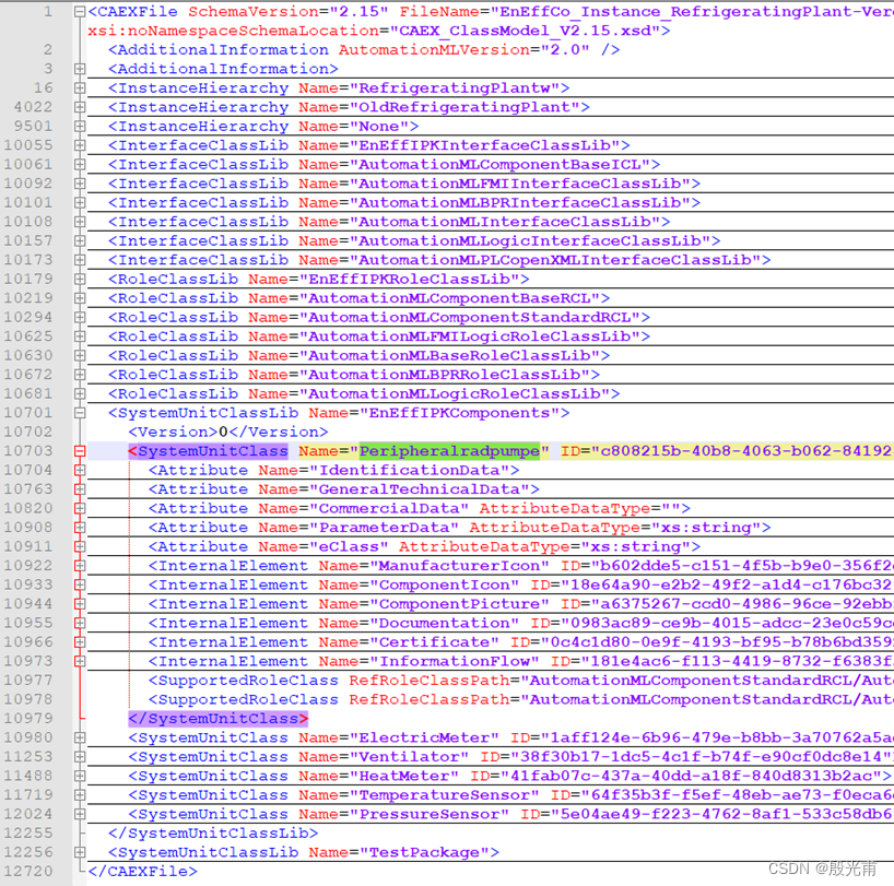 一个AML项目文件在 AutomationML Editor中打开的样子与以XML的形式打开的样子如下: