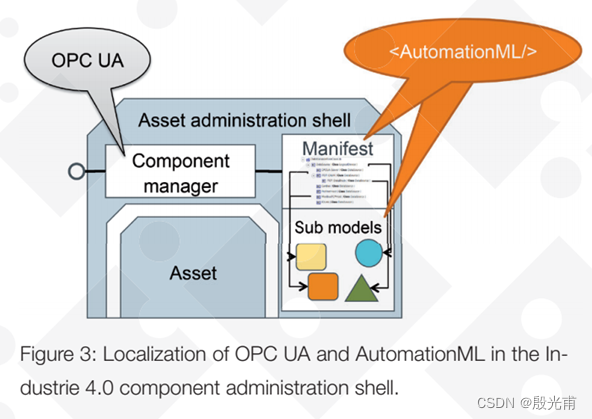 AutomationML和OPC UA 的技术组合可以满足AAS的要求,其组件管理和符合工业4.0的通信。