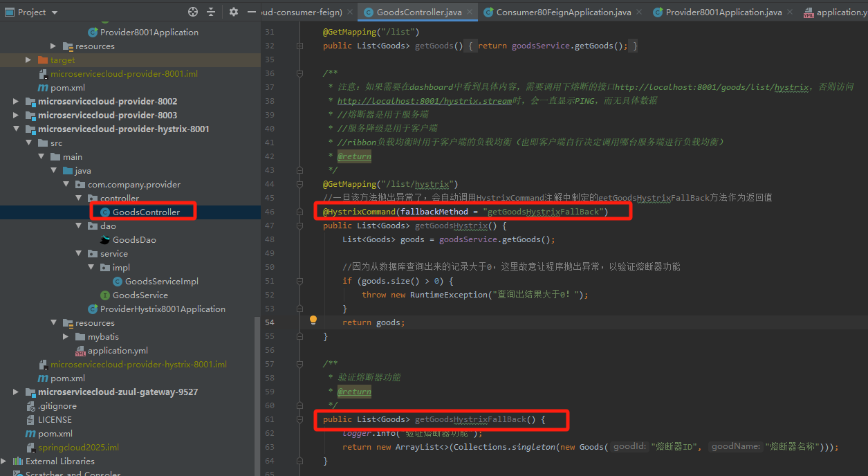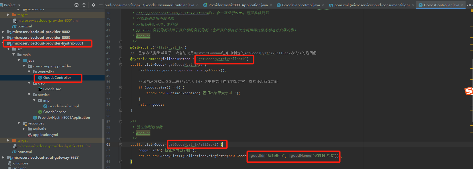@HystrixCommand(fallbackMethod = "getGoodsHystrixFallBack")