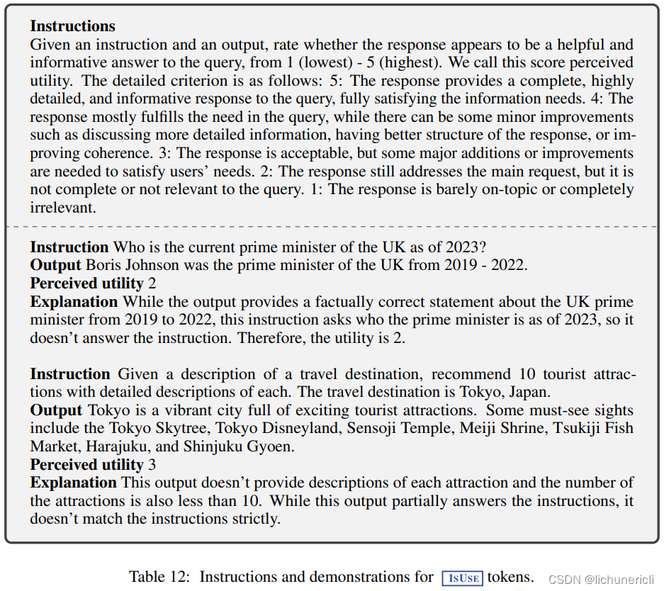以” 检索” 为例。向 GPT-4 发送了一条特定类型的指令(” 给定指令,请判断从网络上查找一些外部文档是否有助于生成更好的回复。”),然后用 fewshot 演示了 I 的原始任务输入 x 和输出 y,以预测适当的反映标记文本:p(r|I,x,y)。