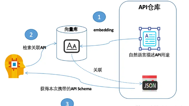 - 根据用户输入问题进行语义搜索,获取到相关的API描述