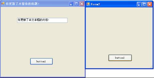 将更新Form1的标题为“你更新了本窗体的标题!”,更新Form1中的文本框的内容为:“你更新了本文本框的内容!”,并刷新Form1。