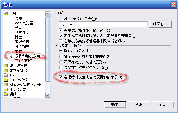 因素三:VS.Net 的选项设置中是否选择了“仅在运行时生成启动项目和依赖项”选项。