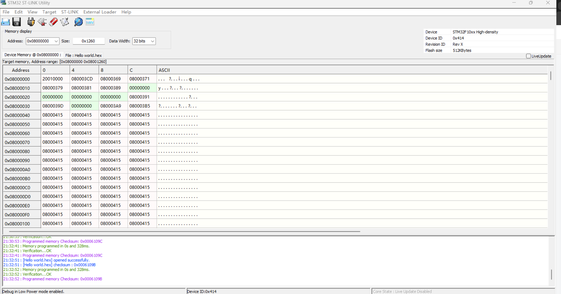 - 由于芯片可能是盗版,所以正版软件CubeIDE不支持。故可以通过使用CubeIDE生成.hex文件,然后使用STlink Utility对单片机进行烧录。