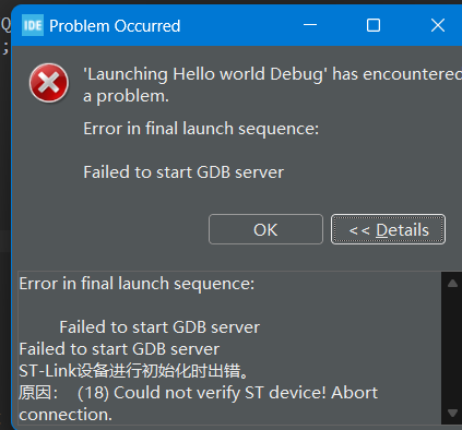 使用CubeIDE对stm32f103zet6进行烧录时,出现了Failed to start GDB server CubeIDE的问题。
