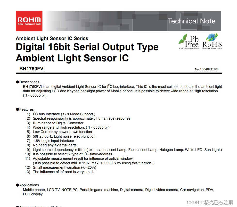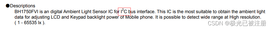 一个光照传感器,使用IIC进行通信的数字传感器,主要功能为测量光照强度;
