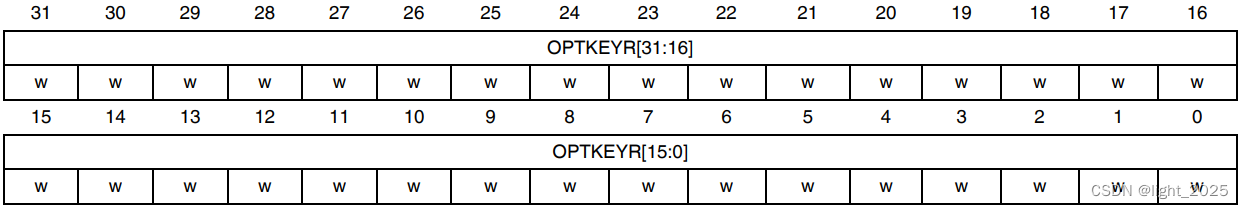 - 解锁,在FLASH选项密钥寄存器FLASH_OPTKEYR中写入OPTKET1=0x0819 2A3B;接着在Flash选项密钥寄存器FLASH_OPTKEYR中写入OPTKEY2=0x4C5D 6E7F。