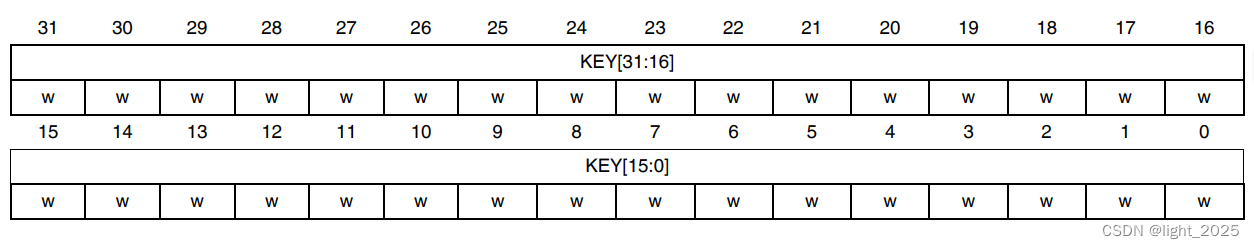 - 往 FLASH 密钥寄存器 FLASH_KEYR 中写入 KEY1=0x45670123