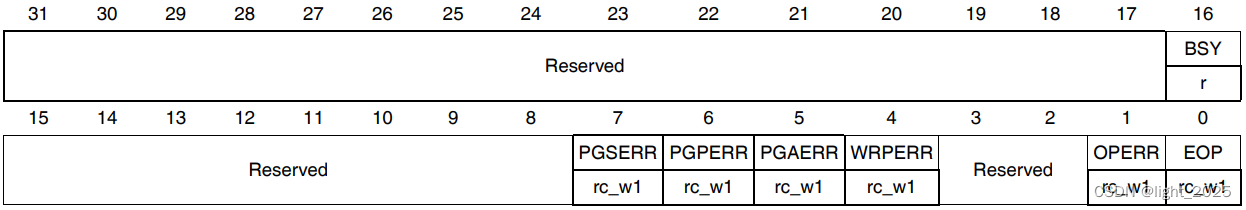 - 检查FLASH_SR状态寄存器的 “忙碌寄存器BSY” ,以确认当前未执行任何FLASH操作