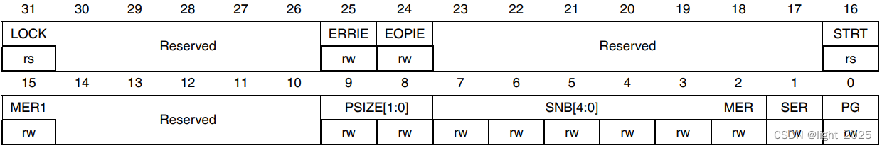 解锁的时候,他对FLASH_KEYR寄存器写入两个解锁参数。上锁的时候,对FLASH_CR寄存器的FLASH_CR_LOCK位置1。