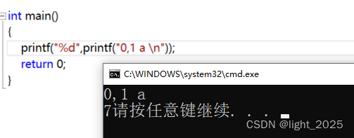 这里输出的结果全是数字,可能不能很好的表明 printf函数的返回值是 数字、字母、标点符号、空格 所有的数量: