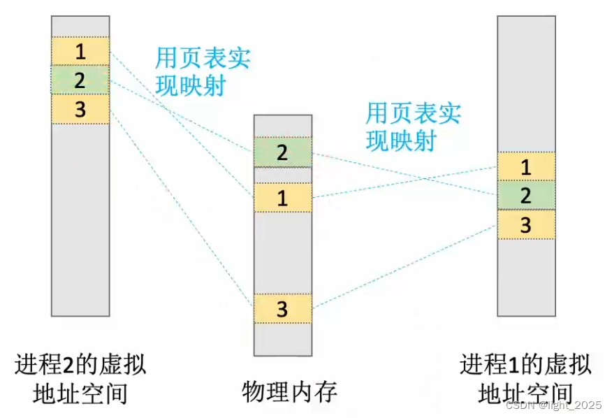 这个不难理解,两个不同的进程将内存映射文件映射到虚拟地址空间;此时只需要改变对应进程的页表,使得让不同进程的页表映射到物理内存的同一个地址上,这样便可实现共享文件;