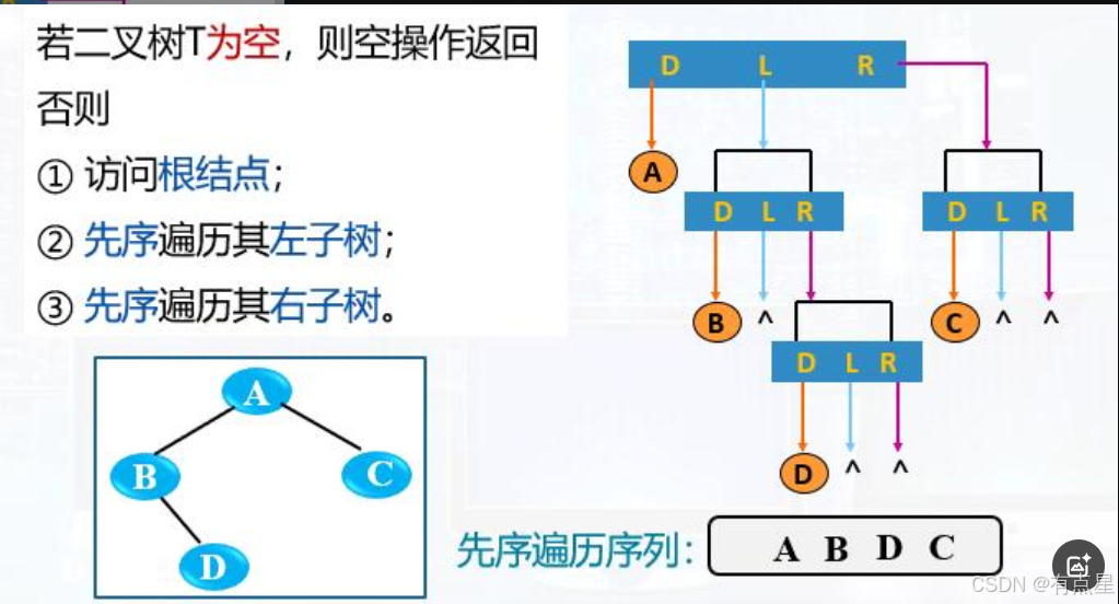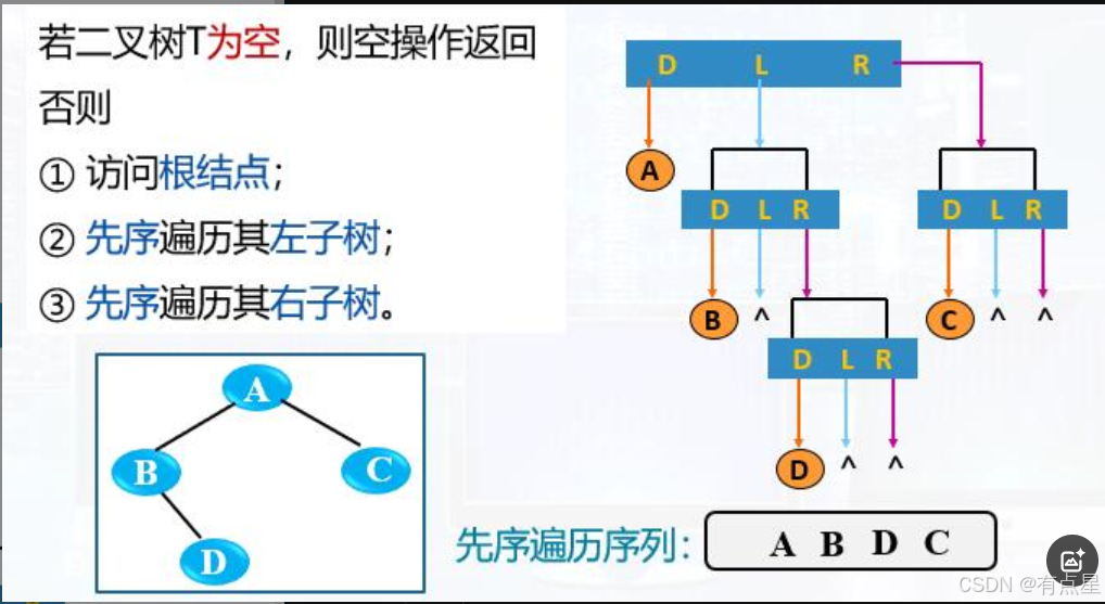 void PreOrder(bintree T); /* t为指向树根结点的指针,树的前序遍历*/