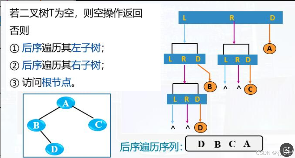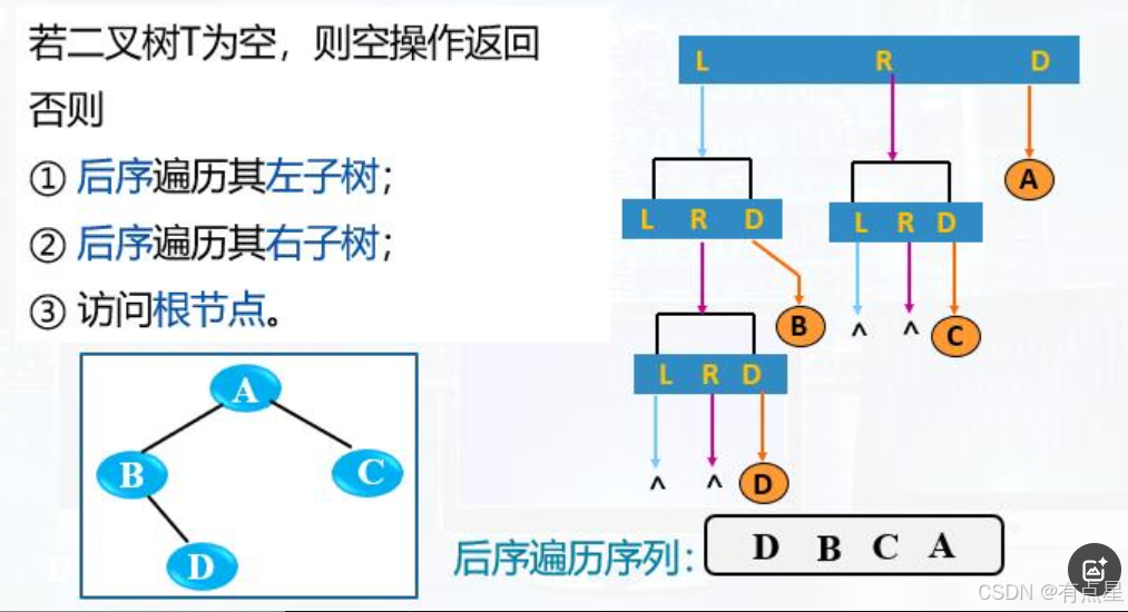 void PostOrder(bintree T); /* t为指向树根结点的指针,树的后序遍历*/