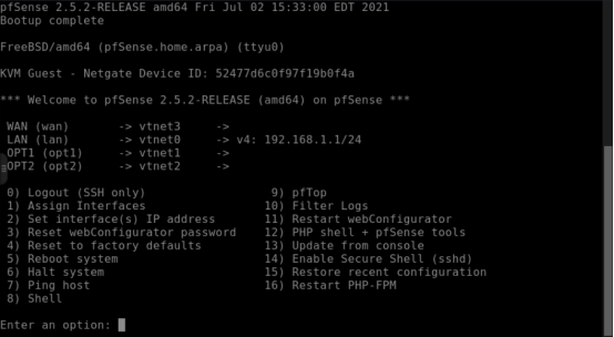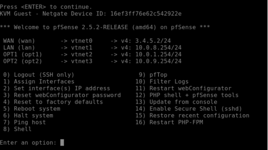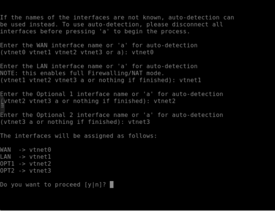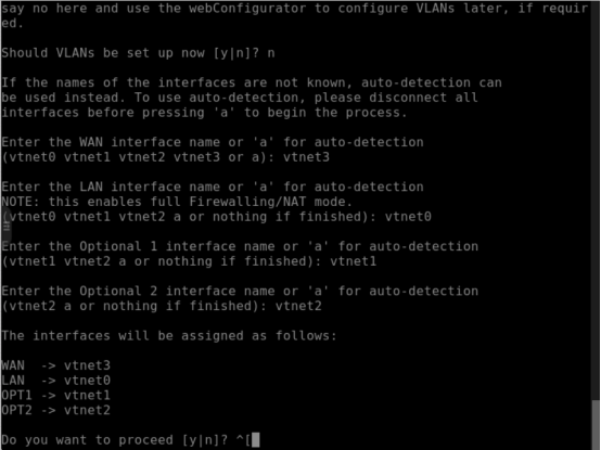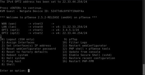 先配置4口(vtnet3)为 wan 口,另外三个口为lan口