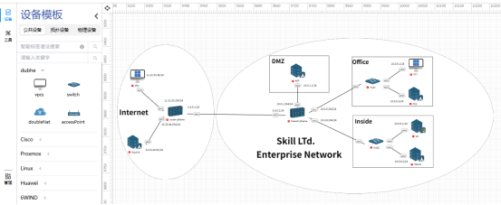 - 1、拓扑还原:1:1复刻大赛网络拓扑,划分Internet、Inside、DMZ、Office四大区域。