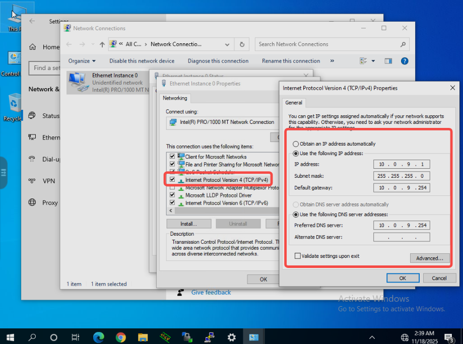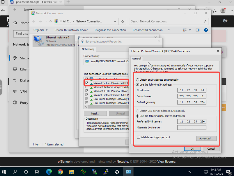 将ip和mask设置为拓扑图中要求的11.22.33.44/24,网关和dns指向11.22.33.254